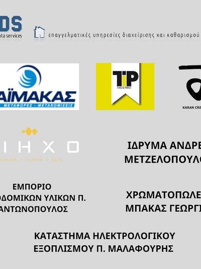 Οι εταιρείες που βοήθησαν στην ανακαίνιση του χώρου της Τράπεζας Τρόφιμων και συνέβαλαν στην δημιουργία ενός χώρου που πληροί όλες τις απαραίτητες προδιαγραφές για την φύλαξη και διατήρηση τροφίμων ήταν το χρωματοπωλείο - Μπάκας Γεώργιος, το κατάστημα Ηλεκτρολογικών Ειδών και Υπηρεσιών - Μαλαφούρης Παναγιώτης, η εταιρεία με τα κατασκευαστικά υλικά του κ. Αντωνόπουλου, το κέντρο εκτυπώσεων “This is Print”, η εταιρεία καθαρισμού Monias Data Services και το τοπικό supermarket “Σιμιτζής”.