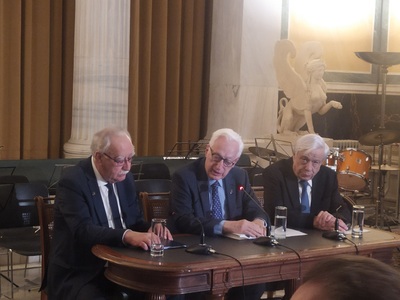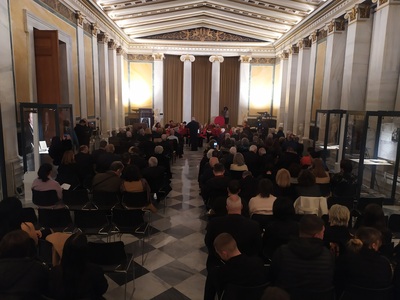 Η εκδήλωση φιλοξενήθηκε στην κατάμεστη Ανατολική Αίθουσα του Μεγάρου της Ακαδημίας Αθηνών και ξεκίνησε με χαιρετισμό του Πρόεδρου της Ακαδημίας Μιχάλη Σταθόπουλου ο οποίος χαρακτήρισε τιμητική για την Ακαδημία την οργάνωση της εκδήλωσης μνήμης και αναφέρθηκε στο Καλαβρυτινό Ολοκαύτωμα αλλά και στην πρώτη περίοδο που ακολούθησε.