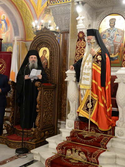 Το απόγευμα της Κυριακής 10 Δεκεμβρίου 2023, ήταν στην Πάτρα ο Μακαριότατος Αρχιεπίσκοπος Κύπρου κ.κ. Γεώργιος, ο οποίος ήρθε κατόπιν προσκλήσεως του σεβασμιοτάτου Μητροπολίτη Πατρών κ. Χρυσοστόμου και της Ένωσης Κυπρίων ν. Αχαΐας προκειμένου να παραστεί στα αποκαλυπτήρια της προτομής του Εθνομάρτυρα της Κύπρου, Αρχιεπισκόπου Κύπρου Κυπριανού που απαγχονίστηκε στις 9 Ιουλίου του 1821 από τους Τούρκους.