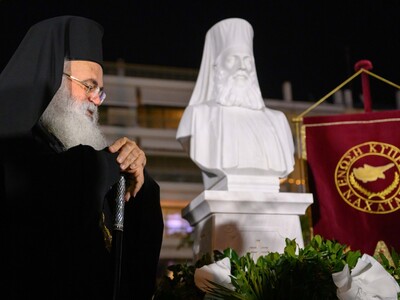 Ο προκαθήμενος της Ορθοδόξου Κυπριακής εκκλησίας ήρθε στην Πάτρα και παρέστη στα αποκαλυπτήρια της προτομής του αρχιεπισκόπου Κυπριανού που είχε απαγχονιστεί από τους Τούρκους το 1821