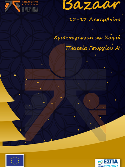 Το Χριστουγεννιάτικο bazaar του Θεραπευτικού Παιδαγωγικού Κέντρου Πατρών Ατόμων με νοητική υστέρηση «Η Μέριμνα» θα φιλοξενηθεί στο Χριστουγεννιάτικο χωριό, στην πλατεία Γεωργίου Α’ στην Πάτρα, από τις 12 έως και τις 17 Δεκεμβρίου 2023.