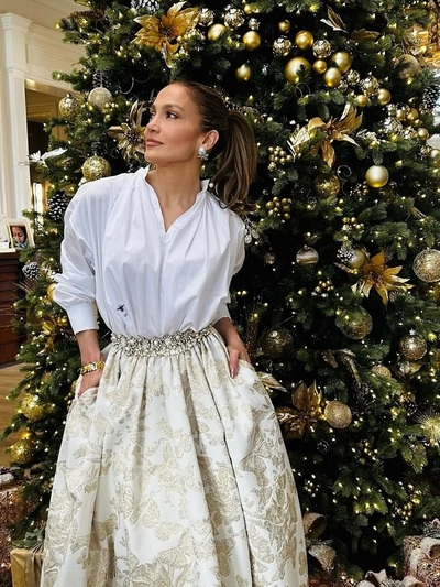 Προτίμησε τη glam συνταγή του μονοχρωματικού χρυσού, η οποία θεωρείται διαχρονική αξία και την υιοθετεί πολύς κόσμος. Μπάλες ματ και γυαλιστερές, κουκουνάρια, λουλούδια ήταν όλα «ασορτί» στο δέντρο της αγέραστης performer και συζύγου του Μπεν Αφλεκ. Αυτό που έκανε πάντως τη μεγαλύτερη εντύπωση ήταν πως η Τζένιφερ φωτογραφήθηκε μπροστά του με outfit ταιριαστό, δείγμα πως δεν αφήνει στυλιστικά τίποτα στην τύχη.