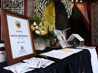 Πολλά άτομα πέρασαν για να πουν το τελευταίο «αντίο» σε έναν από τους μεγαλύτερους ποδοσφαιριστές της χώρας, που φόρεσε τη φανέλα της ΑΕΚ, με το φέρετρο να είναι τυλιγμένο με τη σημαία της Ένωσης.