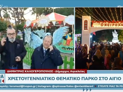 Σε αυτό το πλαίσιο ο δήμαρχος Αιγιαλείας κ. Δημήτρης Καλογερόπουλος μίλησε για τη φετινή διοργάνωση «Ονειροχώρα», στους τηλεοπτικούς σταθμούς Open και Mega, μαζί με τον καλλιτεχνικό διευθυντή του Πάρκου κ. Αλέξη Ασημακόπουλο.
