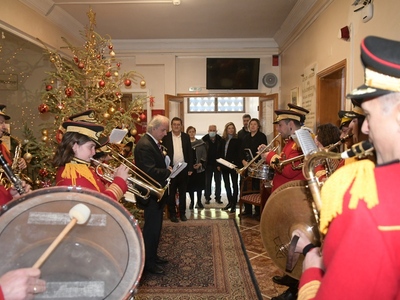 Στις επισκέψεις συμμετείχε η Δημοτική Μουσική που έπαιξε γιορτινές μελωδίες.