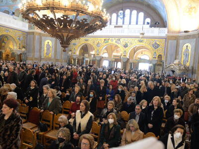 Στό τέλος τῆς Θείας Λειτουργίας, ὁ Σεβασμιώτατος ἐξέφρασε τήν χαρά του καί τήν συγκίνησή του γιά τήν συμμετοχή τοῦ Λαοῦ στήν Θεία Λατρεία, ἡ ὁποία εἶναι ἡ ἀπάντηση σέ ὃλους, ὃσοι θέλουν μια κοινωνία χωρίς πνευματικές βάσεις, χωρίς ἀξίες, χωρίς Θεό.
