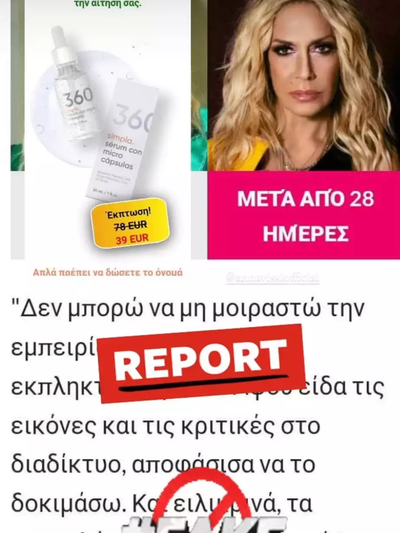 «Παρακαλώ μην πατάτε σε συνδέσμους που χρησιμοποιούν το όνομα της Άννας Βίσση για να “πουλήσουν” δήθεν προϊόντα. Αναφορά και διαγραφή», έγραψε η Άννα Βίσση στην ανάρτησή της.
