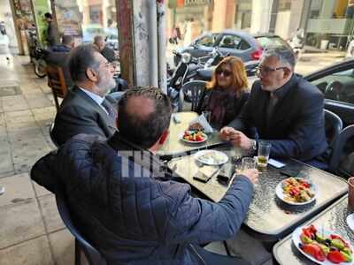 To ουζάκι του βουλευτή Αχαΐας και Τομεάρχη Υγείας του ΣΥΡΙΖΑ-ΠΣ με δημοσιογράφους
