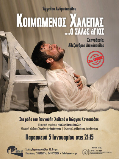 Ο θεατρικός μονόλογος του Άγγελου Ανδρεοπούλου, για τη ζωή του σπουδαίου καλλιτέχνη της γλυπτικής Γιαννούλη Χαλεπά, «Κοιμώμενος Χαλεπάς, ο Σαλός Άγιος», για μια ακόμα φορά επιστρέφει στην Πάτρα που τόσο αγαπήθηκε.