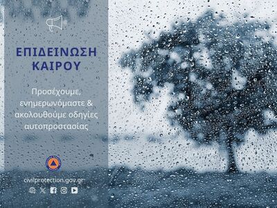 Η Γενική Γραμματεία Πολιτικής Προστασίας (www.civilprotection.gr)του Υπουργείου Προστασίας του Πολίτη, έχει ενημερώσει τις αρμόδιες υπηρεσιακά εμπλεκόμενες κρατικές υπηρεσίες, καθώς και τις περιφέρειες και τους δήμους της χώρας, ώστε να βρίσκονται σε αυξημένη ετοιμότητα πολιτικής προστασίας, προκειμένου να αντιμετωπίσουν άμεσα τις επιπτώσεις από την εκδήλωση των έντονων καιρικών φαινομένων.