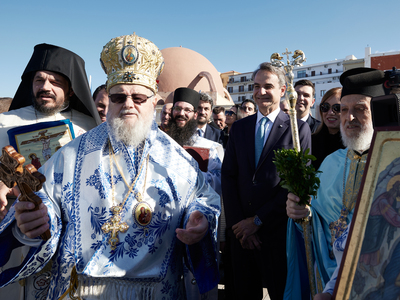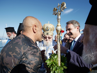 Στο παλιό λιμάνι πραγματοποιήθηκε ο αγιασμών των υδάτων στην πόλη των Χανίων παρουσία του πρωθυπουργού Κυριάκου Μητσοτάκη.