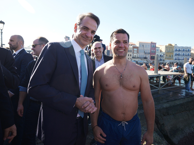 Ο Πρωθυπουργός έδωσε σταυρουδάκια σε όσους βούτηξαν για τον σταυρό στο λιμάνι των Χανίων