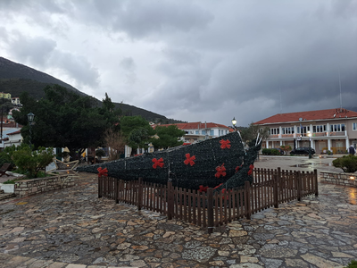 Από το μπουρίνι δεν γλίτωσε ούτε το χριστουγεννιάτικο δέντρο που ήταν στημένο στην κεντρική πλατεία του νησιού