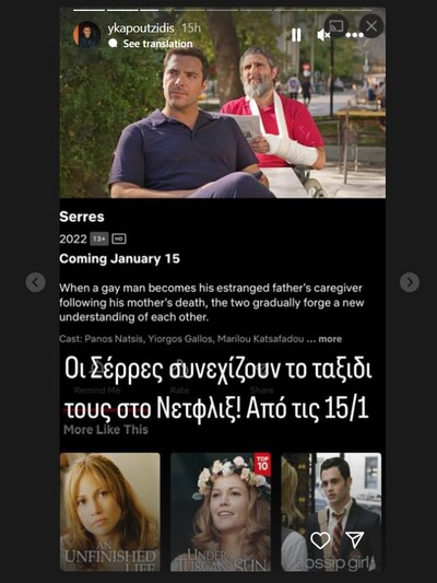 «Οι Σέρρες συνεχίζουν το ταξίδι τους στο Netflix! Από τις 15 Ιανουαρίου», έγραψε στο Instagram ο Γιώργος Καπουτζίδης, ο οποίος σε επόμενο story ενημέρωσε ότι και η σειρά «Σώσε με» μπαίνει στην πλατφόρμα.