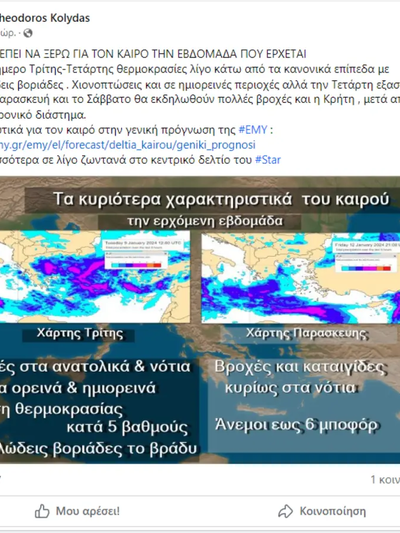 ΠΡΟΓΝΩΣΗ ΓΙΑ ΤΗΝ ΤΕΤΑΡΤΗ 10-01-2024