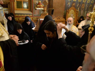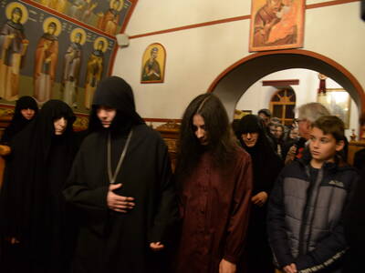 Σε κλίμα ιεράς κατανύξεως ανήμερα της εορτής του τιμίου Προδρόμου και Βαπτιστού Ιωάννου, Ιωάννου, στις 6 το απόγευμα της Κυριακής 7/1/2024, ο σεβασμιότατος Μητροπολίτης Πατρών κ.κ. Χρυσόστομος, χοροστάτησε στόν Ἑσπερινό στό Καθολικό τῆς ἱερᾶς καί σεβασμίας Μονῆς, τοῦ Ἁγίου Νικολάου Πατρῶν & στη συνέχεια ἒκειρε Μοναχή τήν Δόκιμον τῆς Ἱερᾶς Μονῆς, Γεωργία Φραγκογιάννη, κόρη εὐσεβοῦς οἰκογενείας τῶν Πατρῶν, τῆς ὁποίας ἡ γιαγιά ήταν πνευματική θυγατέρα καί μαθήτρια τοῦ Ἁγίου Γερβασίου, τῶν Πατρῶν.