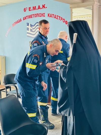 Ο σεβασμότατος Μητροπολίτης Πατρών αναφέρθηκε στήν μεγάλη ὑπηρεσία, πού προσφέρουν οἱ ὑπηρετοῦντες στήν ΕΜΑΚ, σέ δύσκολες καταστάσεις, σώζοντας μέ κίνδυνο τῆς ζωῆς τους, ὂχι μόνο περιουσίες, ἀλλά καί ἀνθρώπινες ζωές.