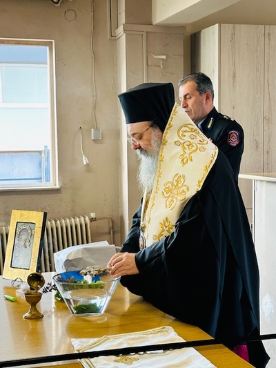 Με την ευκαιρία της απαρχής τοῦ νέου ἒτους, ο σεβασμιότατος Μητροπολίτης Πατρών κ.κ. Χρυσόστομος, εκλήθη εὐγενῶς ἀπό τόν Διοικητή τῆς 6ης ΕΜΑΚ Πατρῶν, προκειμένου να τελέσει αγιασμό, στά Γραφεῖα τῆς Ὑπηρεσίας καί νά μιλήσει στό προσωπικό τῆς Ὑπηρεσίας.