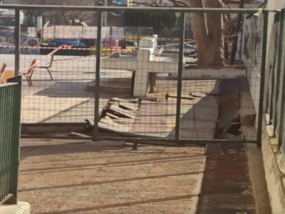 «Με το υπ΄ αριθμ. 19/13-12-2023 έγγραφό μας σας είχαμε ενημερώσει ότι στην κυρίως αυλή του σχολείου μας υπάρχει καθίζηση του εδάφους με αποτέλεσμα οι σχάρες και τα φρεάτια να μη είναι σταθερά στη θέση τους και ζητήσαμε να επιθεωρηθεί από συνεργάτες σας και αν κριθεί σκόπιμο να μπει εκ νέου μπετόν καθώς το κάλυμμα φρεατίου δεν στέκεται πια στη θέση του και είναι επικίνδυνο για τους μαθητές. Η επιθεώρηση που αιτηθήκαμε δεν έγινε, με αποτέλεσμα σήμερα 11/1/2024, ένα μήνα μετά, να έχει γίνει πλήρης καθίζηση του εδάφους, οι βρύσες έχουν πάρει κλίση, η καθίζηση συνεχίζεται και μάλιστα παραλίγο να υπάρξει και τραυματισμός μαθητή!