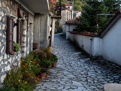 Σε χαμηλότερη στάθμη, συναντάμε το βυρσοδεψείο. Το εσωτερικό του εργαστηρίου είναι χωρισμένο σε «ζώνες» που αντιστοιχούν στα διάφορα στάδια επεξεργασίας των δερμάτων. Η πρώτη είναι για τα «νερά», τον ασβέστη και γενικά τις προπαρασκευαστικές εργασίες. Στην επόμενη βρίσκεται η σειρά με τις «λίμπες» (γούρνες) για τη δέψη. Μια ζώνη ευάερη προορίζεται για το άπλωμα και το στέγνωμα των δερμάτων στη σκιά και τέλος, μια καλά φωτισμένη γωνιά για τις εργασίες της μετάδεψης.