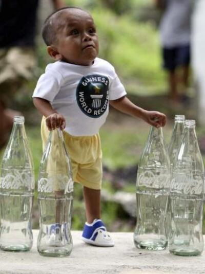 Αυτός είναι ο πιο κοντός άνθρωπος του κόσμου, ονομάζεται Τζούνρεϊ Μπαλάουινγκ, είναι Φιλιππινέζος και φωτογραφίζεται από φωτογράφους που έχουν προσλάβει τα Παγκόσμια Ρεκόρ Γκίνες. Ο Μπαλάουινγκ, που είναι 18 χρονών έχει ύψος 24 και 1/4 ίντσες (περίπου 61 εκατοστά) ξαπλωμένος και είναι περίπου δύο ίντσες κοντύτερος από τον τωρινό κάτοχο του ρεκόρ Καγκέντρα Θάπα Μαγκάρ από το Νεπάλ κι αναμένεται να ανακηρυχθεί επίσημα ο πιο κοντός εν ζωή άνθρωπος του κόσμου όταν γίνει 18 ετών την Κυριακή. (AP Photo/Bullit Marquez).