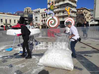 Το φελιζόλ μεταμορφώνεται. Υπό τους ήχους μουσικής που έχει συνδεθεί ή έχει άμεση αναφορά στο καρναβάλι, καρναβαλιστές της Πάτρας με μακρά και δημιουργική διαδρομή, έχουν στήσει ένα υπαίθριο καρναβαλικό εργαστήρι στην πλατεία Γεωργίου.