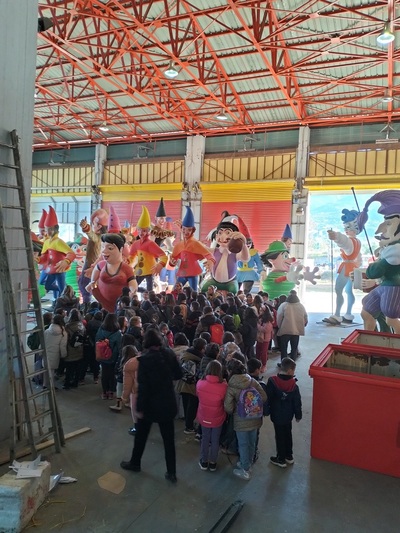 Στην επίσκεψη συμμετείχαν με τους συνοδούς εκπαιδευτικούς τους 155 παιδιά τα οποία ξεναγήθηκαν στους χώρους του Καρναβαλικού Εργαστηρίου.