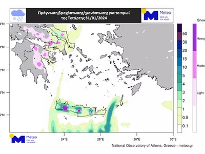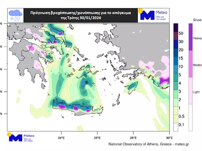 Στη συνέχεια τα φαινόμενα θα παρουσιάσουν σημαντική σταδιακή εξασθένηση και από το πρωί της Τετάρτης 31/01 θα περιοριστούν στην Ανατολική Στερεά και Πελοπόννησο, στην Εύβοια και κυρίως στην Κρήτη.
