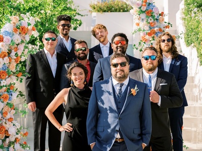 Florist: Ellis’s Roses | | Dj: Matt Murdock | Venue: Villa Erena | Bar services: Boogaloo Photographer : Nick Tsakanikas | Invitations: Glided Swan Paperie | Wedding dress: Galia Lahav – The Aelin Dress Second dress: Galia Lahav – The Jacqueline | Bridesmaids’ Dresses: Retrofete | Makeup Styling: Ona DeShazo | Hair Styling: Jessica Garza | Groom’s Attire: Ralph Lauren | Groomsmen’s Attire: Ralph Lauren | Engagement Ring: Designer IW Marks | Weddings Rings: IW Marks Catering: Aliprantis Catering
