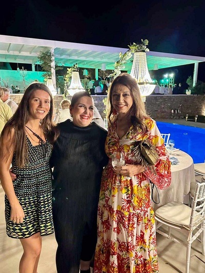 Ακολούθησε πάρτι για 100 καλεσμένους, σε μια εντυπωσιακή βίλα του νησιού. Η ιδιοκτήτρια Κίρατ Γιανγκ ήταν αγαπημένο μοντέλο του θρυλικού Yves Saint Laurent και διέθεσε το σπίτι της ως προσωπική φίλη του σχεδιαστή Βασίλη Ζούλια, ο οποίος διατηρεί στενές σχέσεις με την Αννα Μαρία Ρογδάκη.