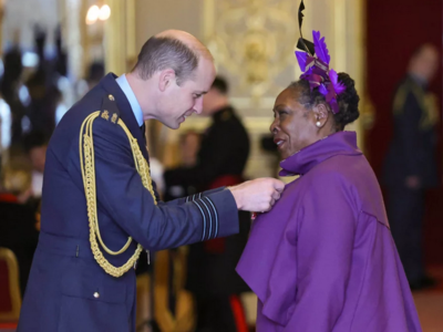 Τα στιγμιότυπα δείχνουν τον πρίγκιπα Γουίλιαμ να χαμογελάει καθώς απονέμει τα βραβεία στην τελετή, Μεταξύ αυτών που αναγνωρίστηκαν σήμερα, ήταν η πρώην πρωταθλήτρια της ποδοσφαιρικής ομάδας της Αγγγλίας, Έλεν Γουάιρ.
