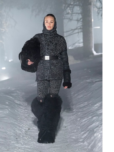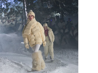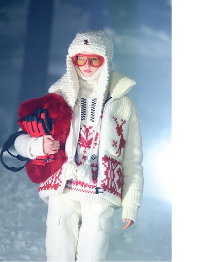 Στην πασαρέλα που «κατέβηκε» στριφογυριστά σε κατάλευκη πλαγιά περπάτησαν Εμιλι Ραταζκόβσκι, Ιρίνα Σάικ, Βιτόρια Τσερέτι, Κάντις Σουάνεπολ, Μπιάνκα Μπάλτι, Τζόαν Σμολς, Μαριακάρλα Μπόσκονο ενώ front row κάθισαν Κέιτ Μος, Αν Χάθαγουέι, Ολίβια Παλέρμο, Νίνα Ντόμπρεβ, Γουίλοου Σμιθ, Ελσα Χοσκ κ.α. Eκεί ήταν βέβαια και ο ιταλός Ρέμο Ρουφίνι, δισεκατομμυριούχος επιχειρηματίας, πρόεδρος και διευθύνων σύμβουλος της Moncler.