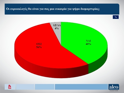 Αξιοσημείωτη είναι, πάντως, η απάντηση στην ερώτηση, αν οι ευρωεκλογές αποτελούν μία ευκαιρία για ψήφο διαμαρτυρίας, με το 56% να δηλώνει «όχι».