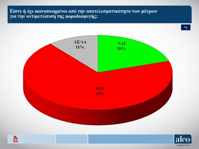 Για τη φοροδιαφυγή, 7 στους 10, το 69%, δεν είναι ικανοποιημένοι με τα μέτρα της κυβέρνησης.