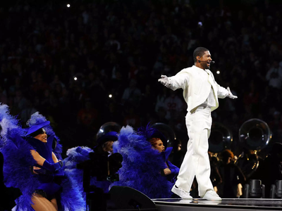 Ο τραγουδιστής Usher ντυμένος στα λευκά εμφανίστηκε στη σκηνή του Allegiant Stadium στο Λας Βέγκας περιτριγυρισμένος από χορευτές και ερμήνευσε τις μεγαλύτερες επιτυχίες του.