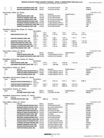 Ξεχώρισαν οι επιδόσεις του Καϊπη Μιχάλη του ΑΟΠ ΚΟΥΡΟΣ στο Ύψος Ανδρών με 2,05μ και της 12χρονης Τσαχλή Νάσιας στα 60μ γυναικών με 8’’.11 η οποία κατέλαβε την τρίτη θέση στην κατάταξη των γυναικών.