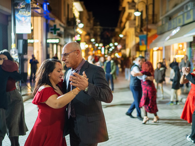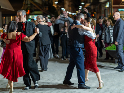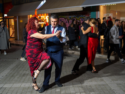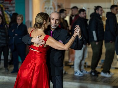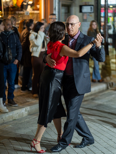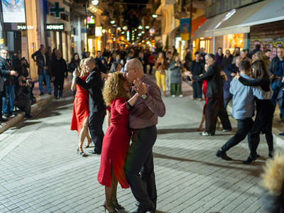 Πλημμύρισε με ήχους και χορευτικές φιγούρες του τανγκό, το βράδυ της Τετάρτης 14 Φεβρουαρίου ο πολυσύχναστος πεζόδρομος της Ρήγα Φεραίου στο ύψος της Γεροκωστοπούλου μεταφέροντας μία αύρα έρωτα και σκορπίζοντας συγκίνηση στους περαστικούς.