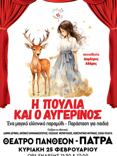 Η παράσταση θα έρθει και στην Πάτρα στο θέατρο Πάνθεον στη Γούναρη και Κανακάρη, την Κυριακή 25/2/2024 και θα παιχθεί στις 11.30 το πρωί & στις 17.00 το απόγευμα.