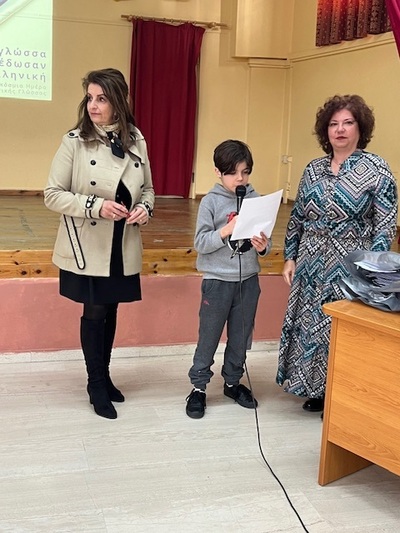 Με αφορμή την Παγκόσμια Ημέρα Ελληνικής Γλώσσας υλοποιήθηκε μια δράση για τους/τις μαθητές/-τριες των τάξεων Δ-Ε-ΣΤ, η οποία περιλάμβανε ενημέρωση των μαθητών/-τριών για τις ελληνικές λέξεις που υπάρχουν στο λεξιλόγιο των ξένων γλωσσών, αλλά και την προέλευση πολλών από αυτές από την αρχαία ελληνική γλώσσα.