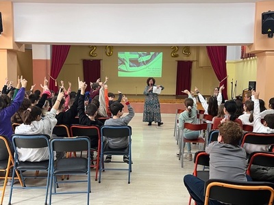 Η κ.Μαλωίνα, ως έμπειρη εκπαιδευτικός, εκμαίευσε από τα παιδιά τις σωστές απαντήσεις σε μια ομιλία που ουσιαστικά ήταν βιωματικό-διαδραστικό παιχνίδι και οι μαθητές/-τριες διασκέδασαν πολύ. Σαν αναμνηστικό για την ημέρα μοιράστηκε σε όλους-ες τους/τις μαθητές/-τριες ένα έντυπο αφιέρωμα στον ελληνικό Εθνικό Ύμνο που περιλάμβανε όλες τις στροφές (158) του ποιήματος ΥΜΝΟΣ ΕΙΣ ΤΗΝ ΕΛΕΥΘΕΡΙΑ του Δ.Σολωμού, καθώς και έναν αναμνηστικό σελιδοδείκτη.
