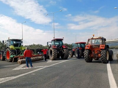Στον αυτοκινητόδρομο έχουν παραταχθει και τρακτέρ.