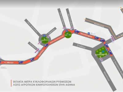 Τα τρακτέρ θα κινηθούν αντίθετα στην οδό Αγίου Κωνσταντίνου, την πλατεία Ομονοίας και την οδό Πανεπιστημίου, προκειμένου να φθάσουν στο Σύνταγμα. Σε αυτό το πλαίσιο, θα υπάρξει προσωρινή διακοπή της κυκλοφορίας πέριξ της πλατείας Ομονοίας.