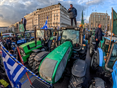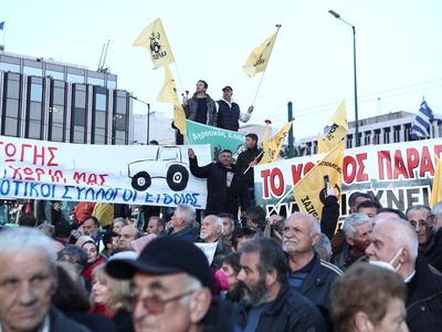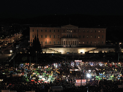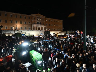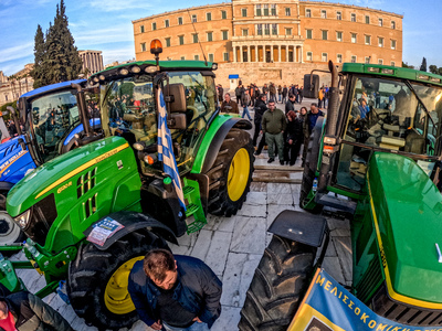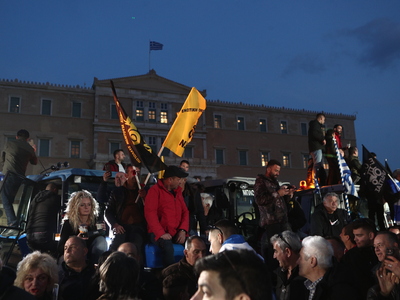 Μπροστά από το Κοινοβούλιο, η Λεωφόρος Βασιλίσσης Σοφίας είναι γεμάτη από τρακτέρ και επαγγελματικά οχήματα, αφού στους διαδηλωτές έχουν προστεθεί ομοσπονδίες, σωματεία και συνδικάτα εργαζομένων από δεκάδες τομείς, που βρίσκονται στο Σύνταγμα για να συμπαρασταθούν στους αγρότες, τους οποίους υποδέχτηκαν με το σύνθημα: «Εργατιά, αγροτιά ενωμένοι μια γροθιά».