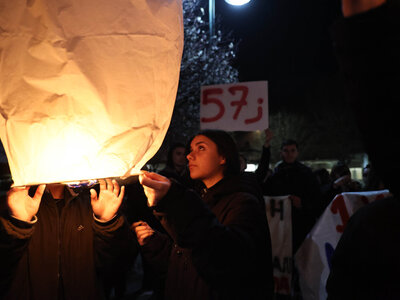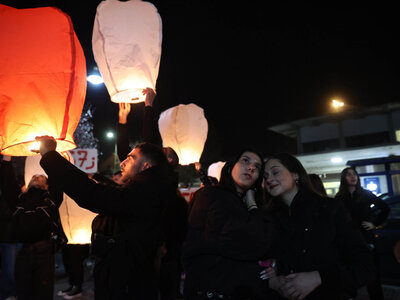 Έστειλαν το μήνυμα ότι «το έγκλημα δεν θα ξεχαστεί» ζητώντας δικαιοσύνη για τα θύματα και άφησαν φαναράκια στον ουρανό στη μνήμη τους.
