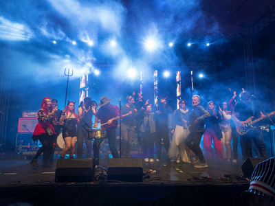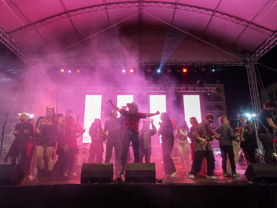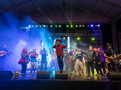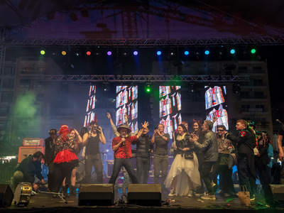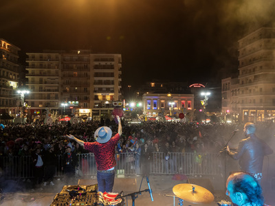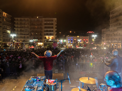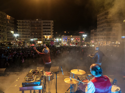 Υπεύθυνος ο διεθνούς φήμης Shantel που με την εξαιρετική μπάντα του Bucovina Club Soundsystem ξεσήκωσε τους χιλιάδες Πατρινούς και επισκέπτες που γέμισαν την πλατεία.