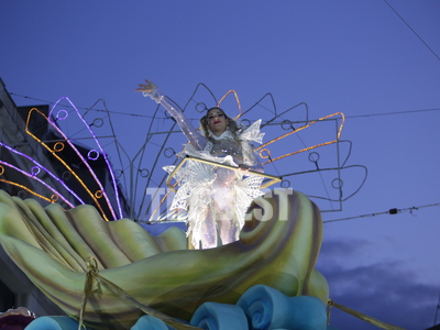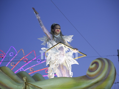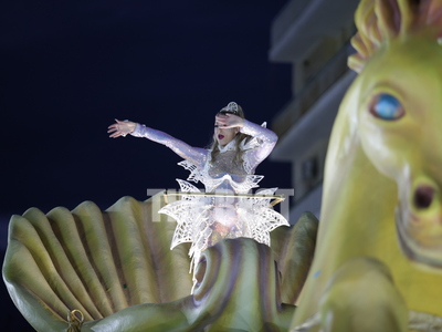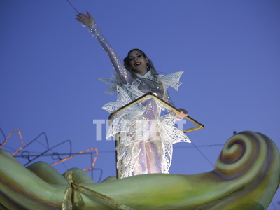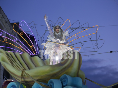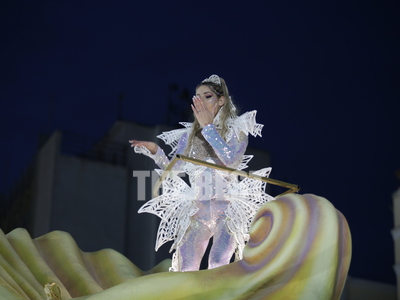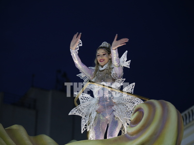 Την εμφάνιση της πάνω στο άρμα της έκανε η βασίλισσα του Πατρινού καρνβαλιού στη νυχτερινή ποδαράτη, Γεωργία Σακκά.