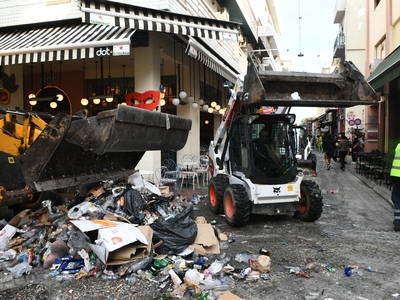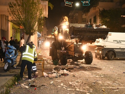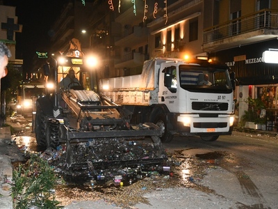Αμέσως μετά τη λήξη της νυχτερινής (Σάββατο 16 Μάρτη) ποδαράτης παρέλασης των πληρωμάτων του Πατρινού Καρναβαλιού, οι εργαζόμενοι στην Καθαριότητα με το μηχανολογικό εξοπλισμό του Δήμου, ρίχτηκαν στη μάχη για την αποκομιδή των όγκων των σκουπιδιών και το πλύσιμο των δρόμων, των πεζοδρομίων, των πεζοδρόμων, της πλατείας Γεωργίου και των άλλων πλατειών, ώστε το πρωί της Κυριακής να παραδώσουν την πόλη καθαρή για την μεγάλη παρέλαση του Πατρινού Καρναβαλιού.