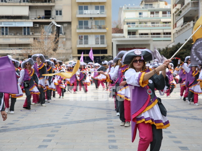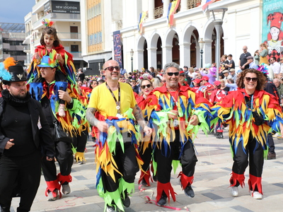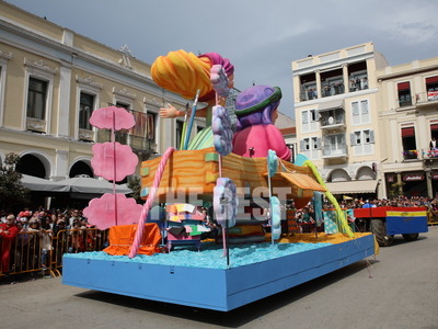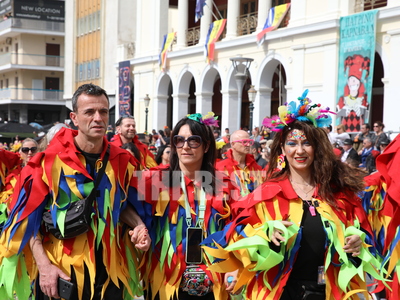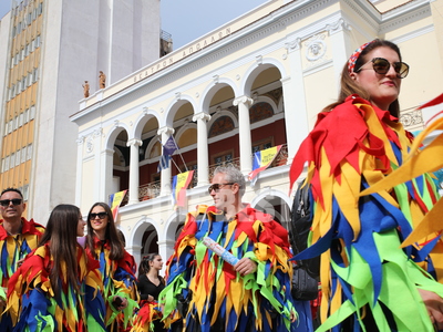 Σαν πολύχρωμο ποτάμι έμοιαζαν οι καρναβαλιστές που ξεχύθηκαν στους δρόμους της Πάτρας στη μεγάλη παρέλαση της Κυριακής.