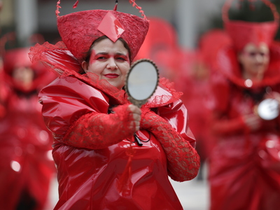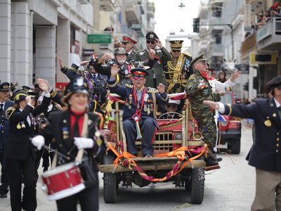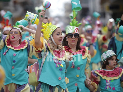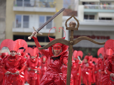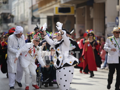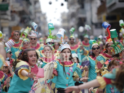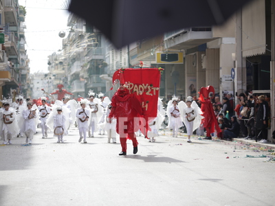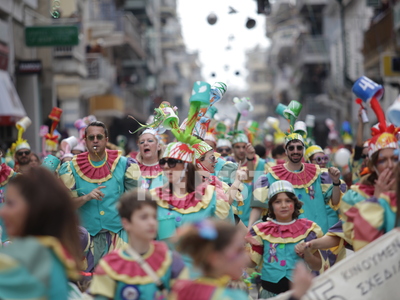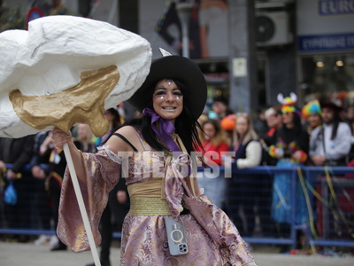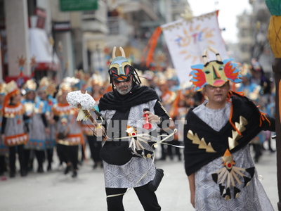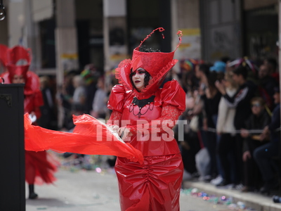 Συνεχίζεται η μεγάλη παρέλαση του Πατρινού Καρναβαλιού με τους χιλιάδες καρναβαλίστές να χορεύουν στους δρόμους της πόλης .