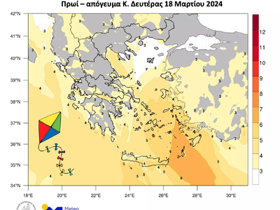 Το meteo έχει δημοσιοποιήσει χάρτη με τις περιοχές που ο άνεμος θα είναι πάνω από 3 μποφόρ την Καθαρά Δευτέρα, ευνοώντας το πέταγμα του χαρταετού.